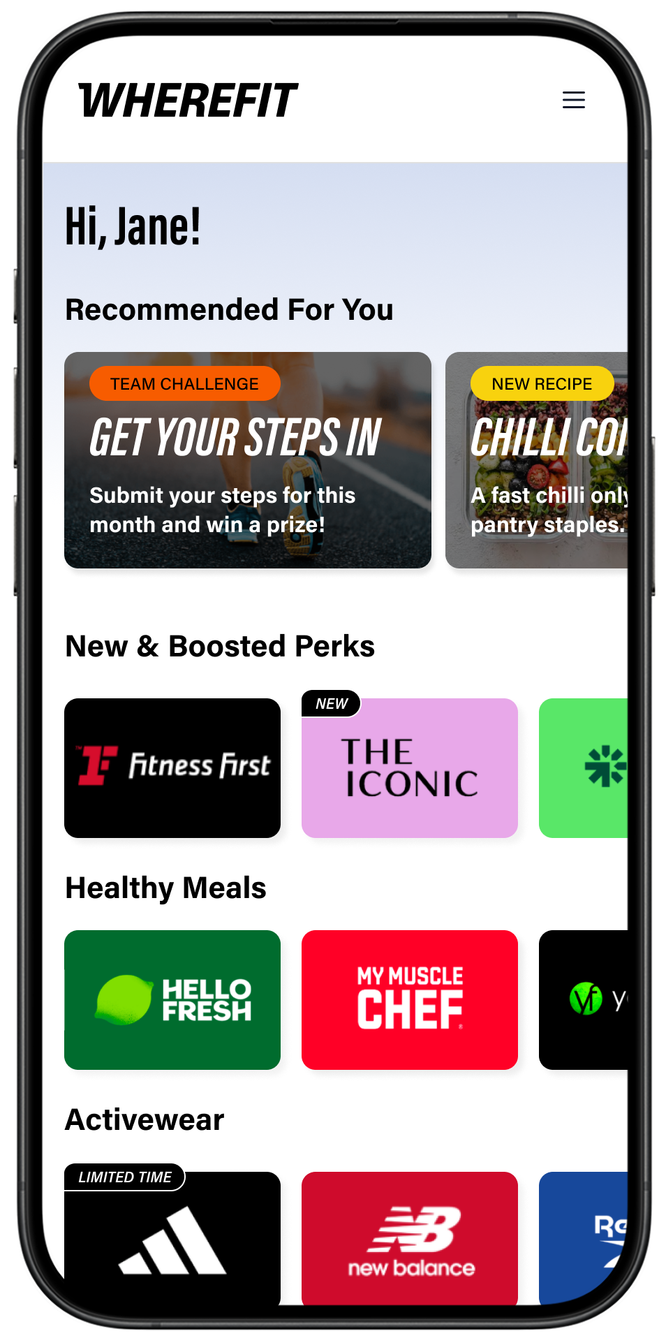 From fitness and recovery to activewear, healthy meals and mental health support, WHEREFIT gives your team access to 4,500+ exclusive offers in one place.