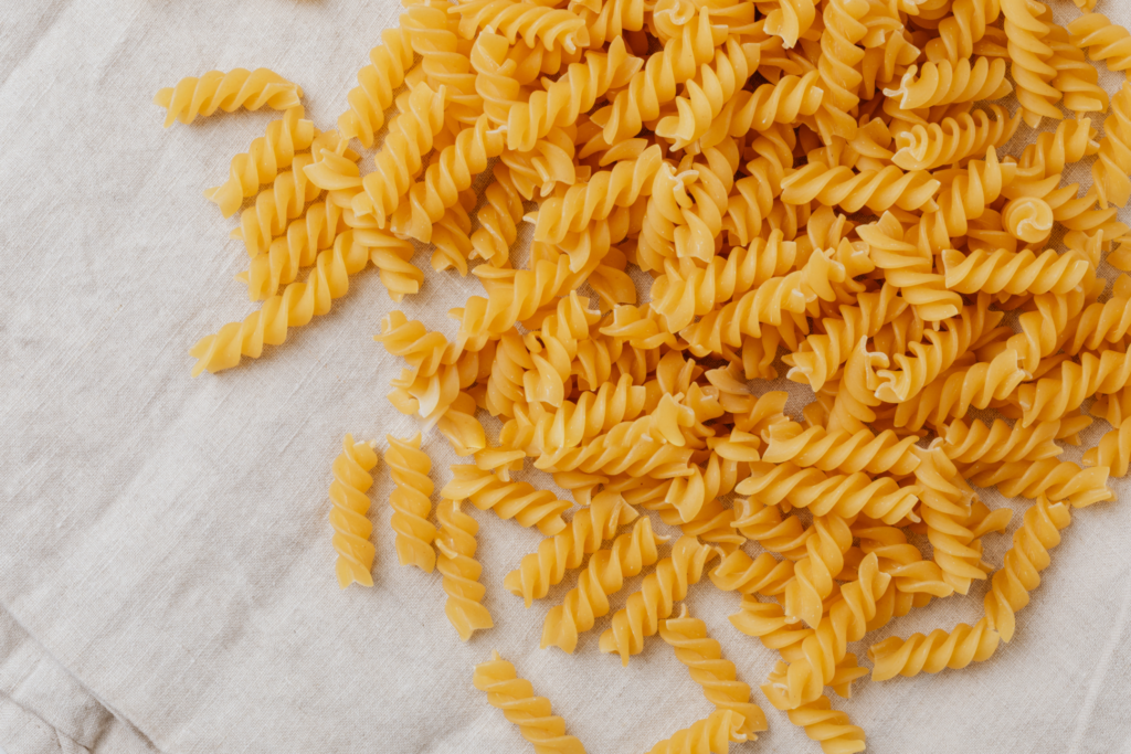 - 80g dry pasta (fusilli spirals, penne, or whatever you have)