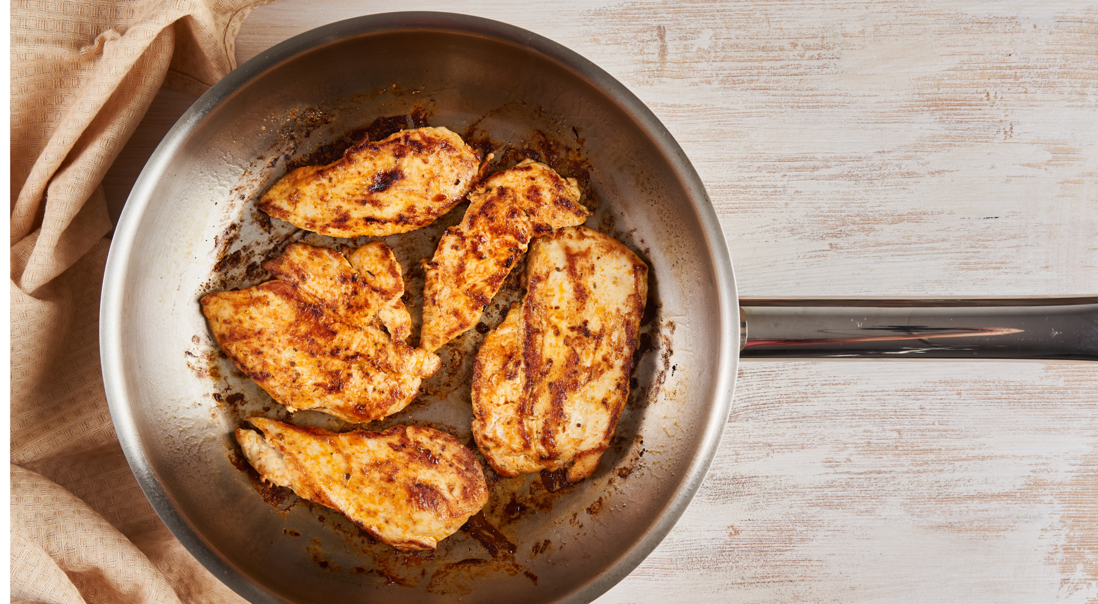 • Add the chicken breast and cook for 5–7 minutes per side until golden and fully cooked. Rest, then slice thinly.